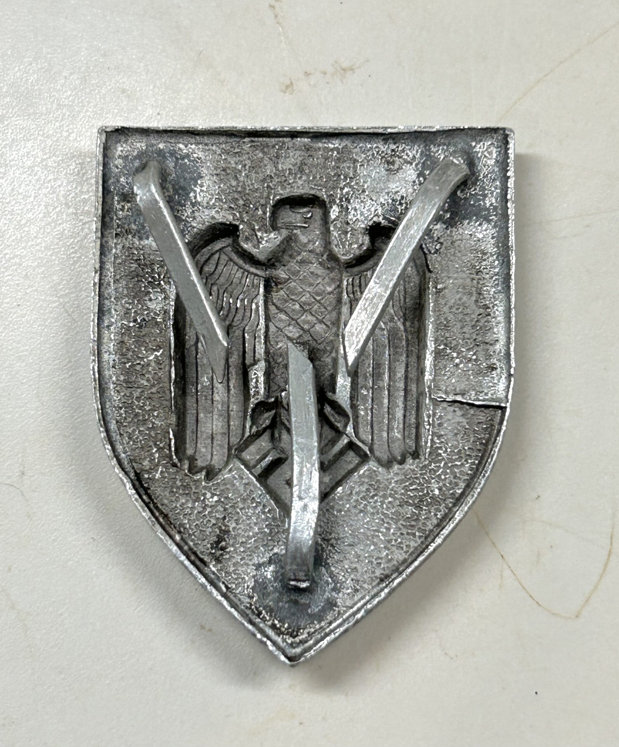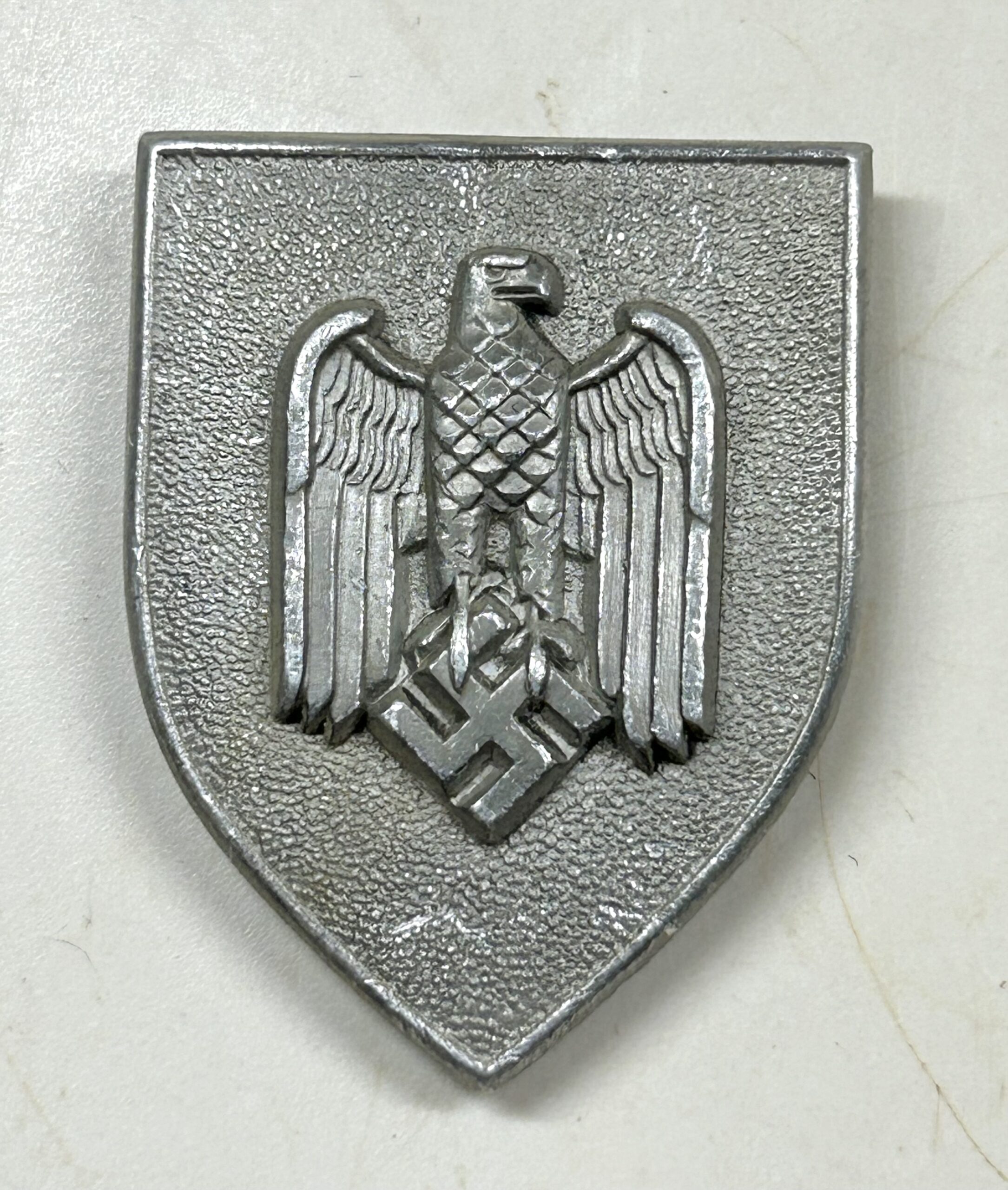 Nice shield insignia from a Heer (Army) shooting lanyard. Great piece of insignia not often found on its own. Would be perfect for a lanyard missing one, or simply displayed. All prongs intact with no damage or repairs.