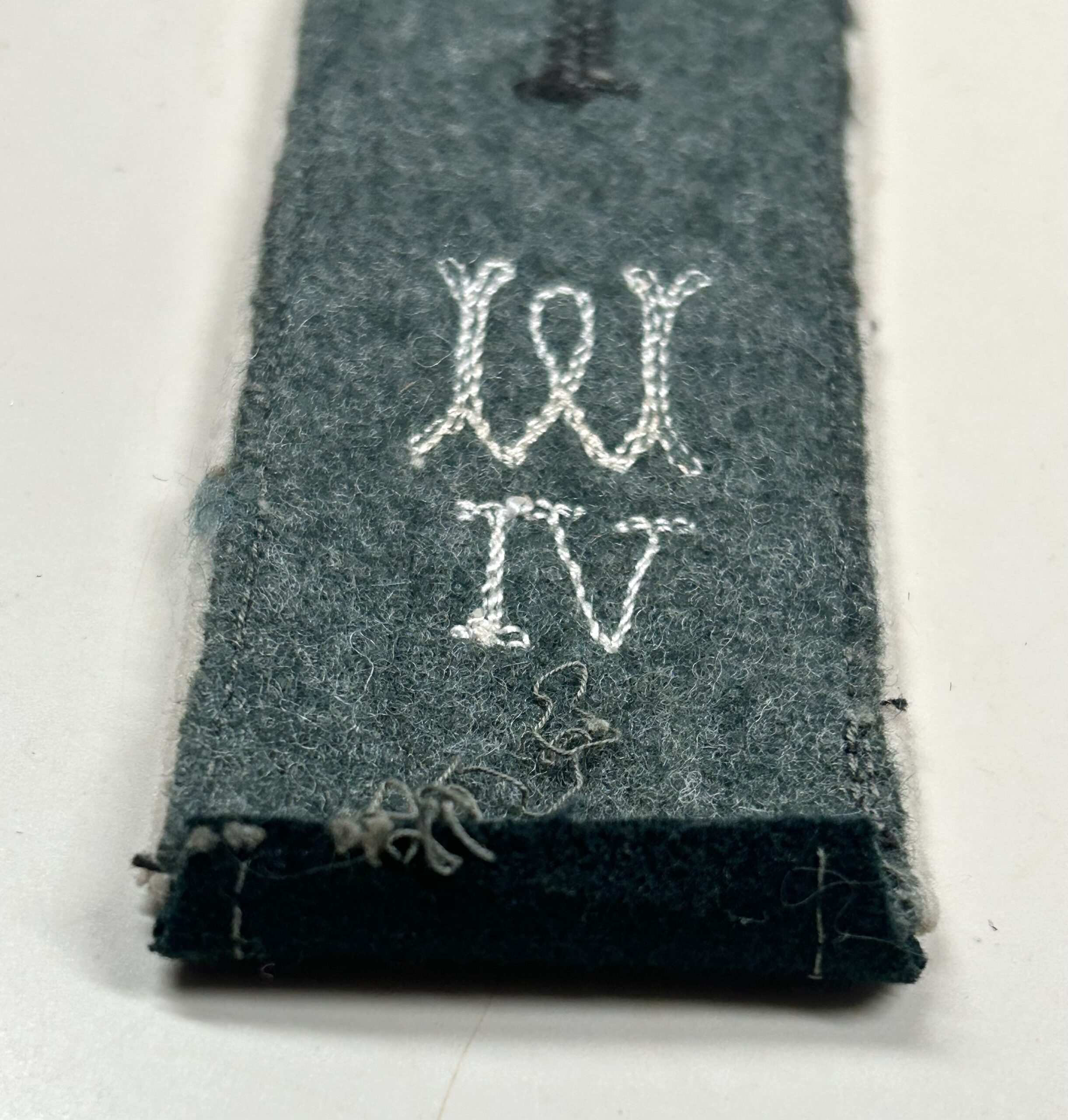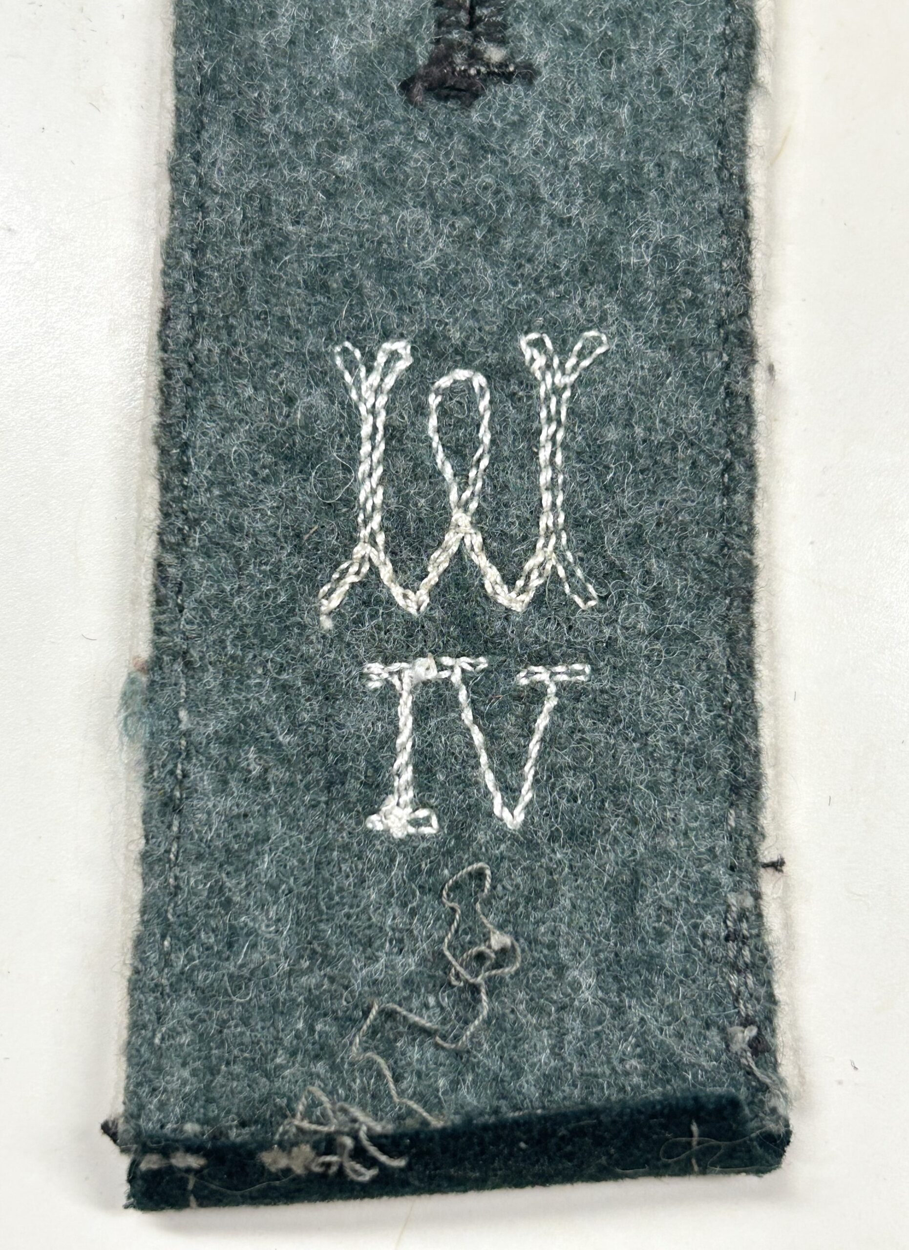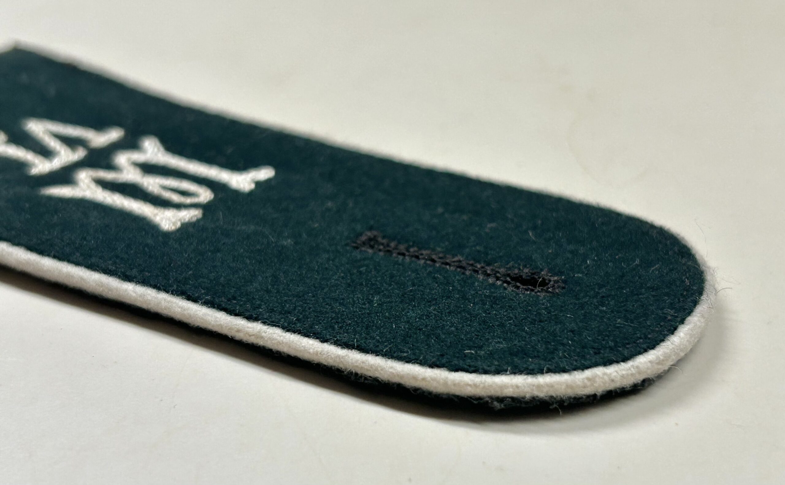 Very nice, early m36 shoulderboard as worn by a Heer (Army) enlisted man in the Wehrersatzdienststelle (Recruiting Offices.) dark green base with white color piping, the board has an embroidered “W” as well as the Roman numerals underneath for region 6. Great piece of early insignia typically missing from most collections.