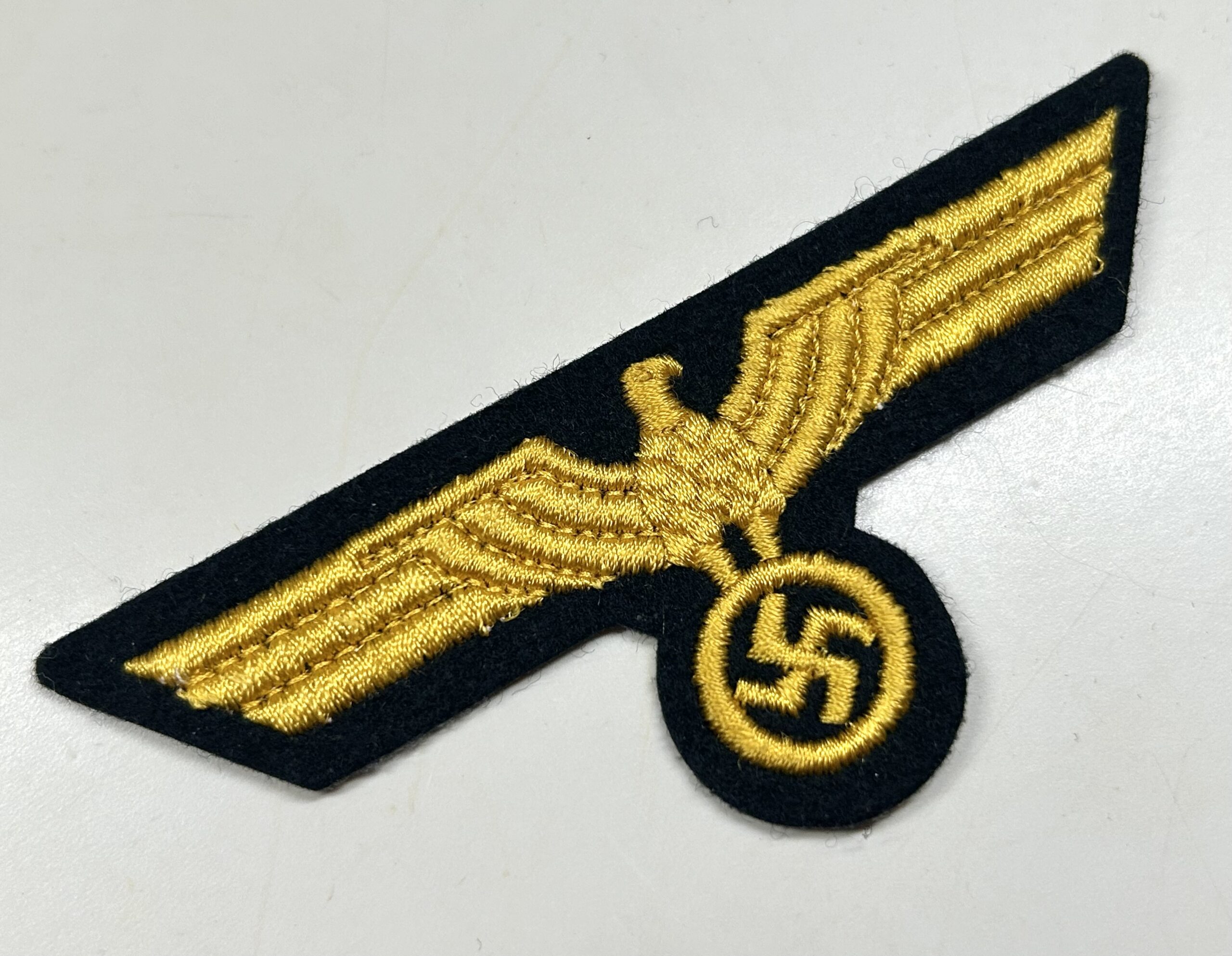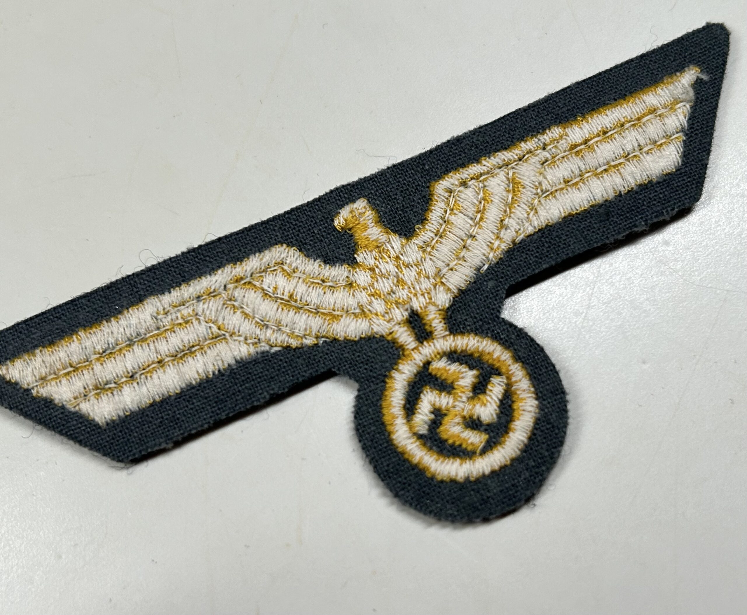 Beautiful, unissued example of a Kriegsmarine (Navy) EM/NCO Embroidered Breast Eagle. These eagles are considered for Enlisted troops though most often seen worn by Non Commissioned Officers. Textbook example, unissued and perfect!