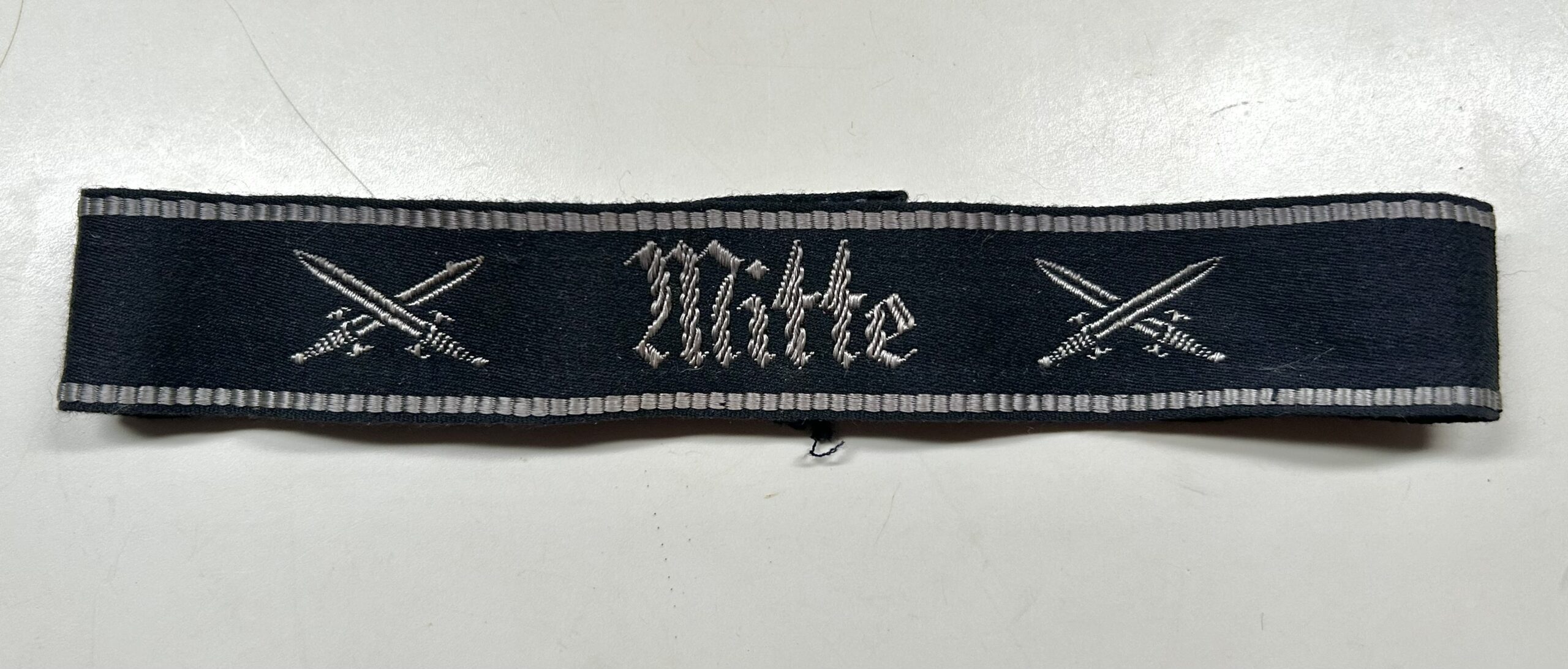 Textbook example of a so called semi-Bevo constructed cufftitle for “Mitte” division from the Veteran organization ‘Kyffhäuserbund’.